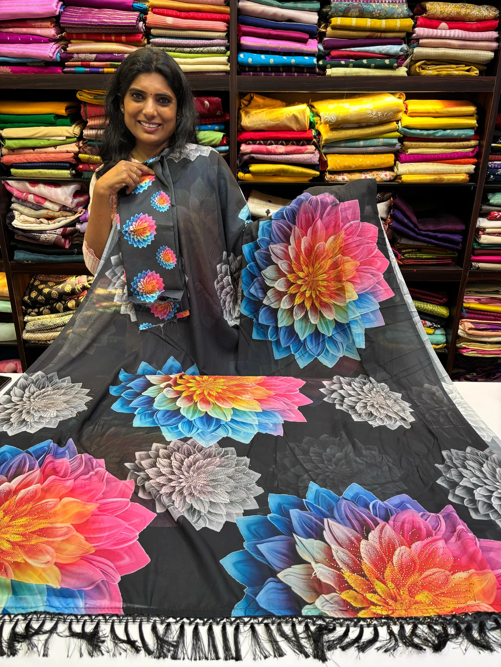 Soft & smooth weightless chiffon have floral digital print with swaroski flower work and tussals