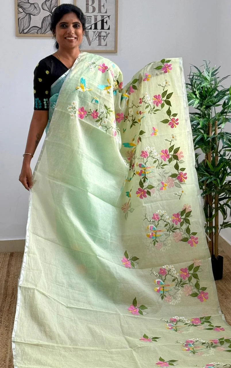 Unique floral embroidery design pattern with beautiful pallu
