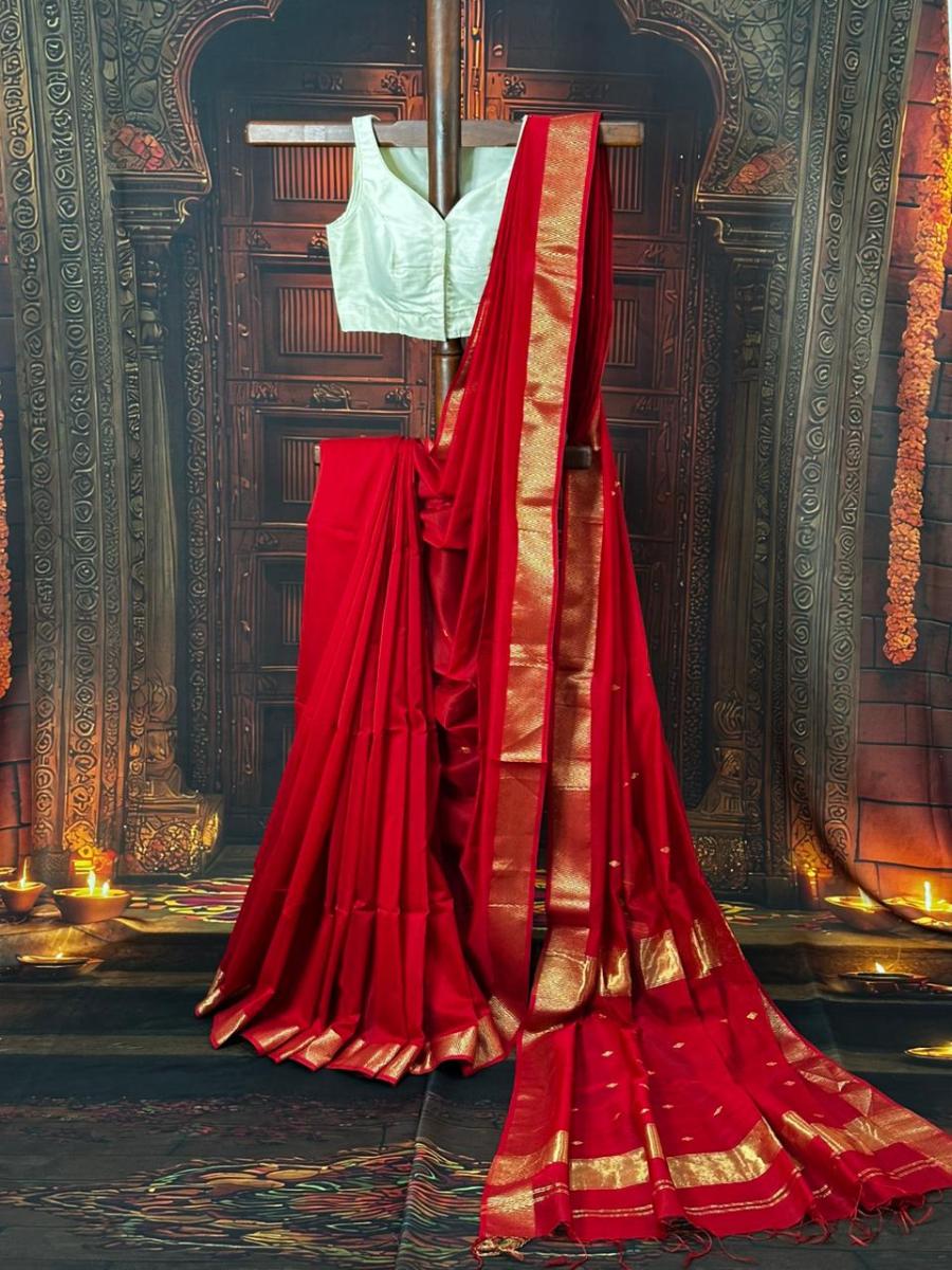 Handwoven maheswari silk cotton saree have flower weaving style with gold zari woven border