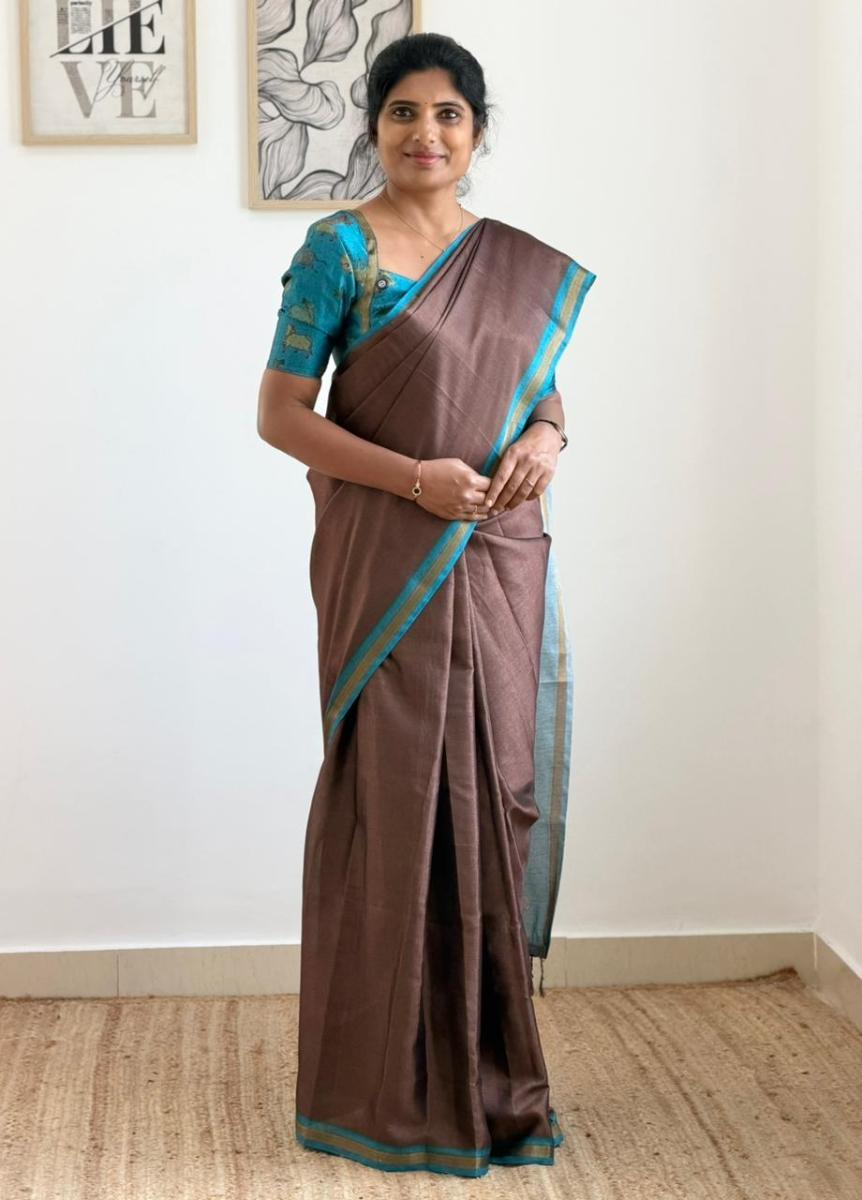 Semi Maheswari Silk otton saree with contrast zari border along pichwai pallu