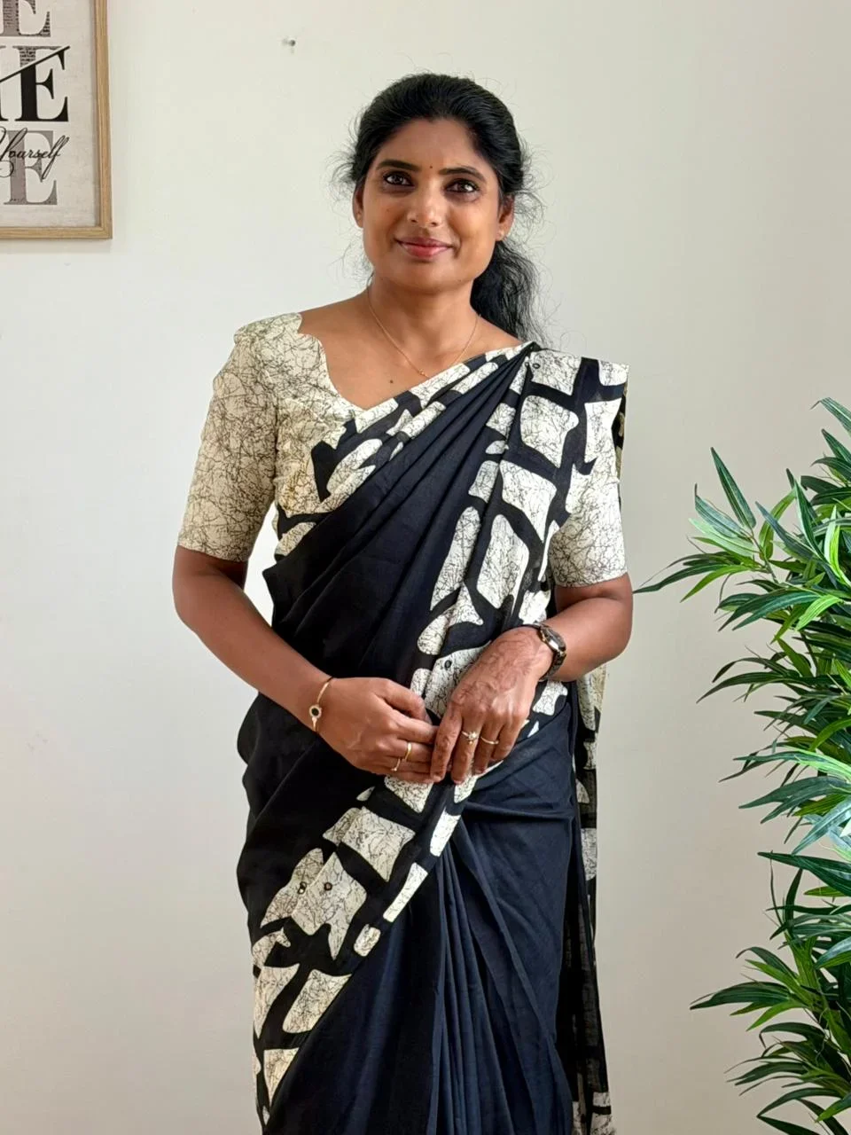 Plain body with foil mirror work contrast border and beautiful pallu