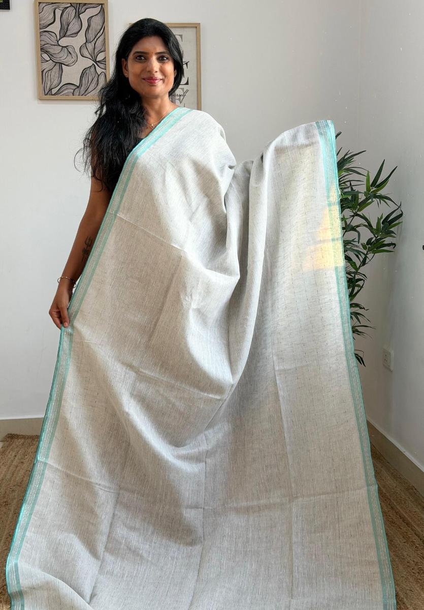 Premium quality linen saree in handpicked design with contrast border and finished with tassels