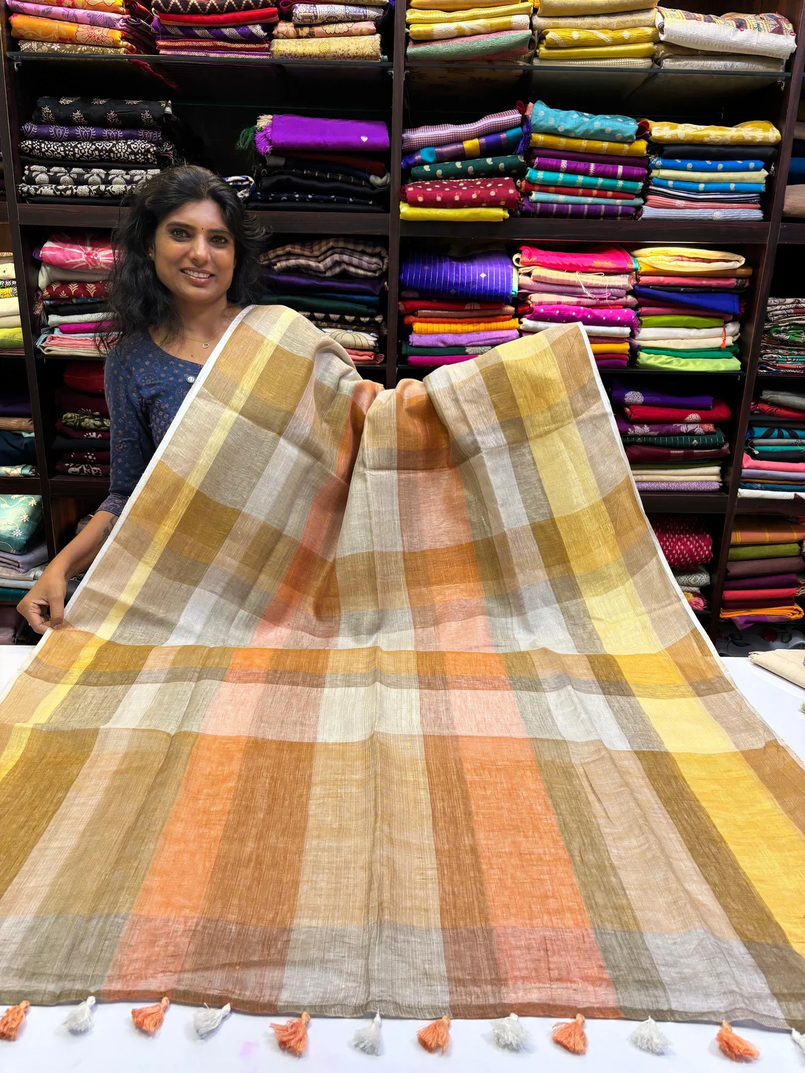 Premium quality linen sarees in handpicked designs with contrast border