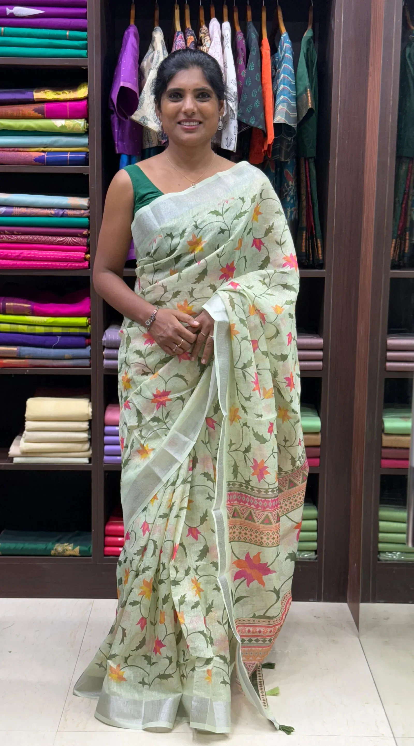 Exclusive digital floral printed body with designer pallu