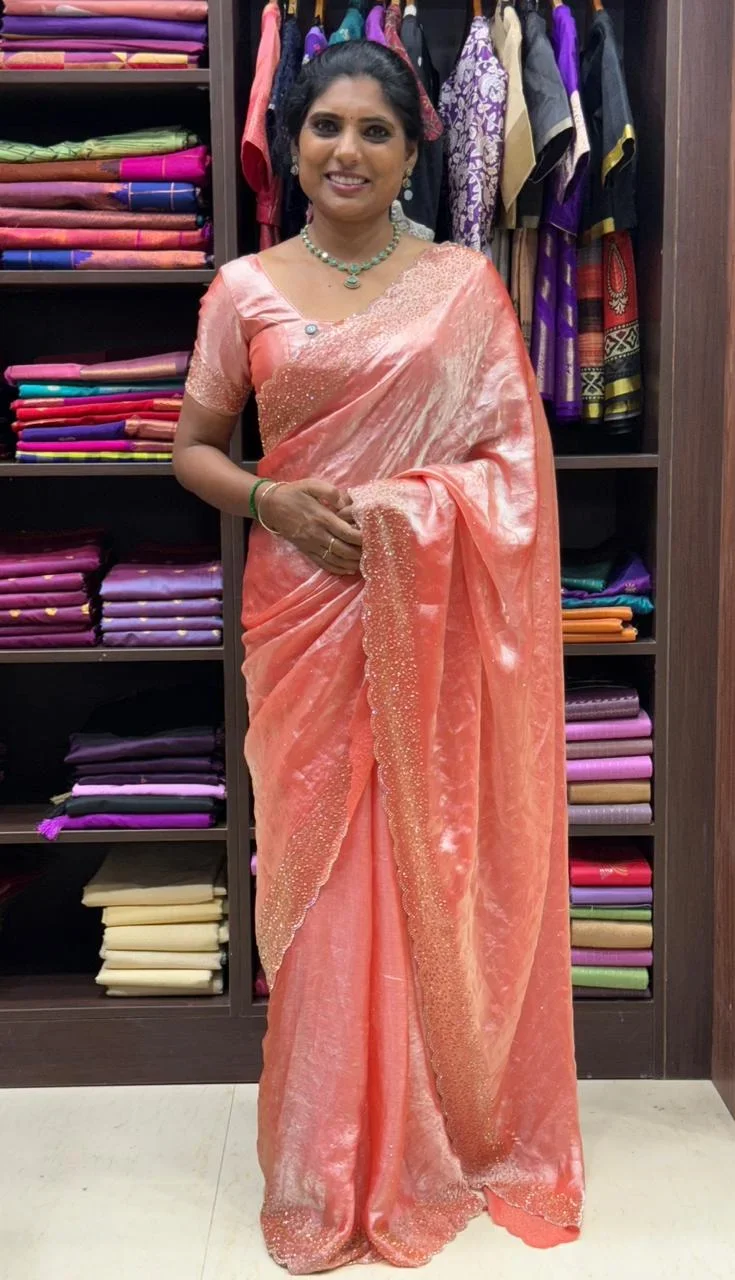 Soft and smooth space silk fendy satin have handwork & siroski work comes with stone work and cutwork border