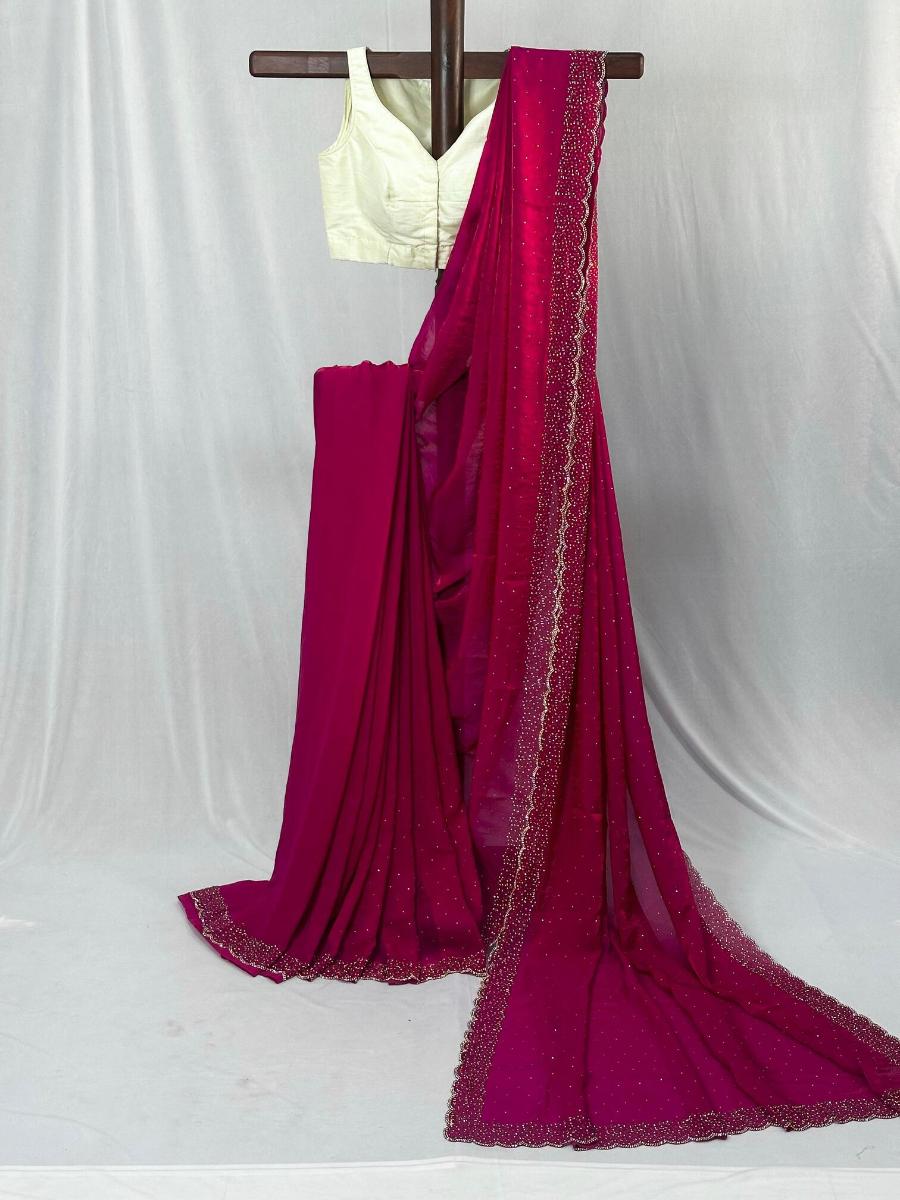 Soft and smooth space silk fendy satin have handwork & siroski work comes with stone work and cutwork border
