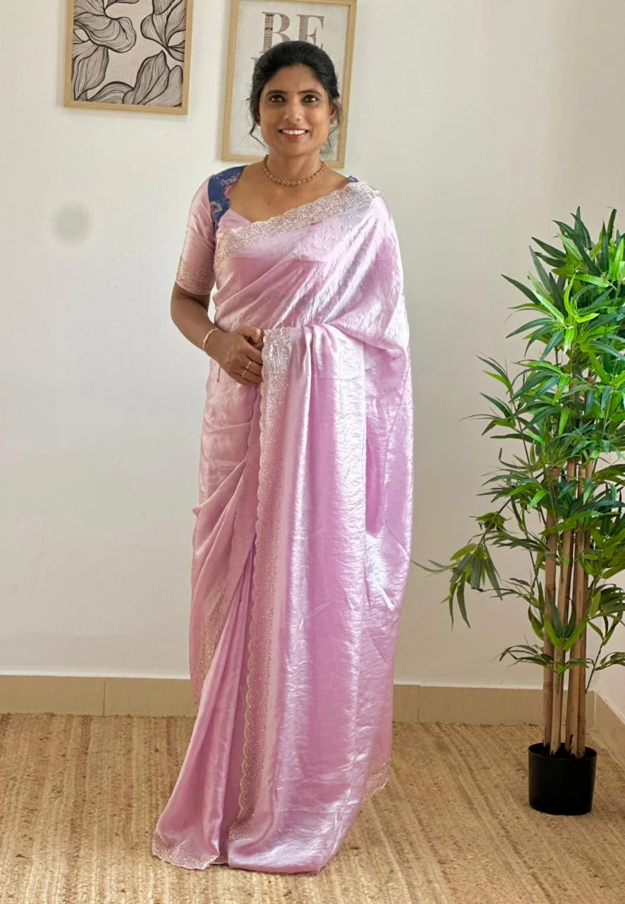 Soft and smooth space silk fendy satin have handwork & siroski work comes with stone work and cutwork border
