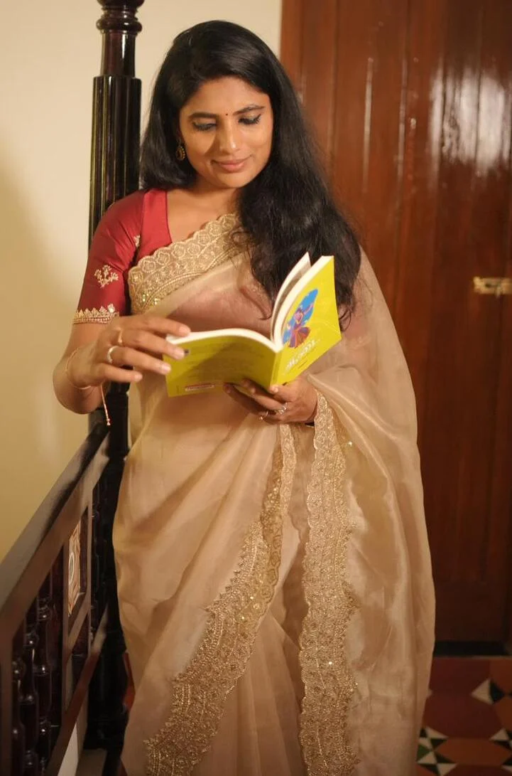 Gold tissue silk have embroidery & sequence work with scalloped cutwork border